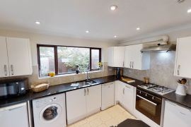 Close to centre of Fishponds with all its shops, bars, restaurants etc and is ideal for bus routes to Glenside and Frenchay. This house has a sunny sitting room at the front of the house with a large TV. There is a main bathroom and separate shower room.  The top floor bedroom has it's own ensuite.  Queen size double beds in all bedrooms. In the garden, there is a lockable shed and secure rear access ideal for those with bikes. Council tax band C. This contract ends on 28th June 2027, please check this works for your group before applying.